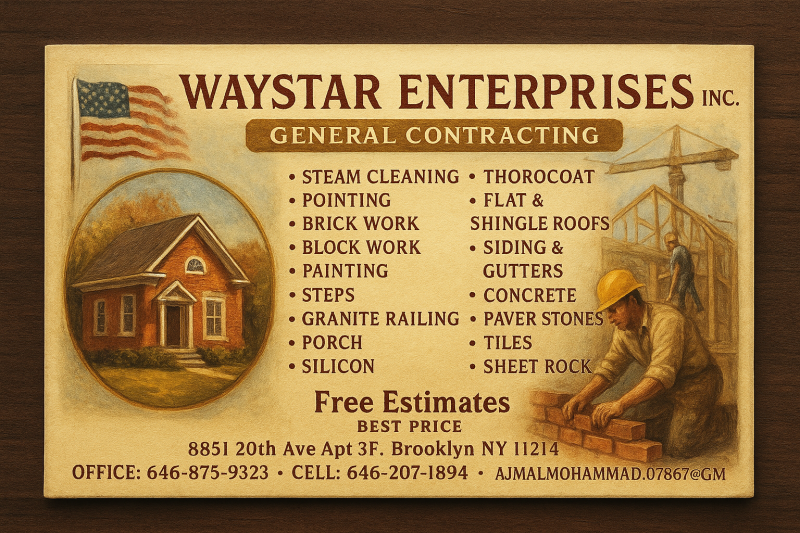 At Waystar Enterprises, we take pride in providing top-notch construction services to our clients in Brooklyn and beyond. With years of experience and a dedicated team of professionals, we are here to bring your vision to life.